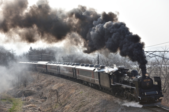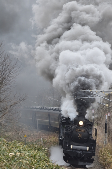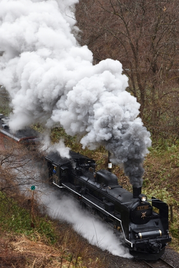 -(211 KB)風で煙が高く上がらず左右に蛇行しますが、S字カーブの直線部分を進んでくる頃には、このようになりました。 しかし、この日のハイライトはこれからで、300oの画角に拘ったこのカメラでは撮り逃がしてしまいました。 この画像は、2026/03/25に磐梯町〜翁島で撮影しました。