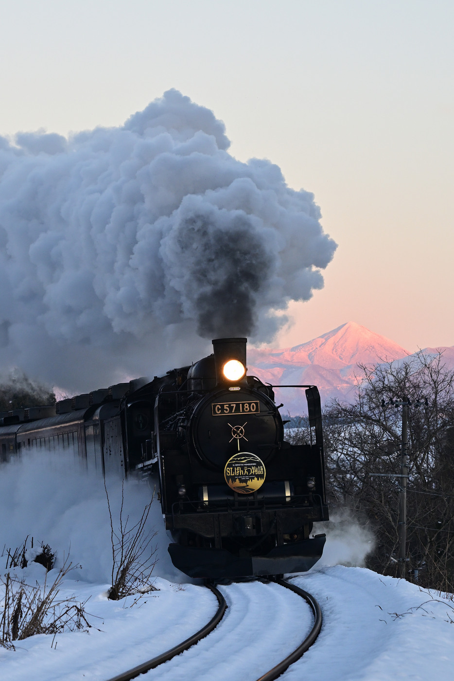 -(290 KB)線路は陰ってしまいましたが、磐梯山輝いていました