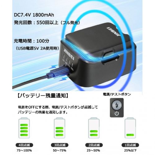 電源にはDC7.4V 1800mAhのリチウム電池を採用し、