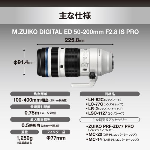 「M.ZUIKO DIGITAL ED 50-200mm F2.8 IS PRO」に、