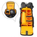 ・内部は明るいオレンジカラーの内装を採用し、バッグの中でも機材を見つけやすくしています。