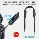 幅50mmのストラップ全体に、通気性とクッション性に