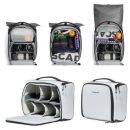 SmartLiftシステムでメイン収納を上下に分割でき、下部にはカメラインサート、上部には日用品を